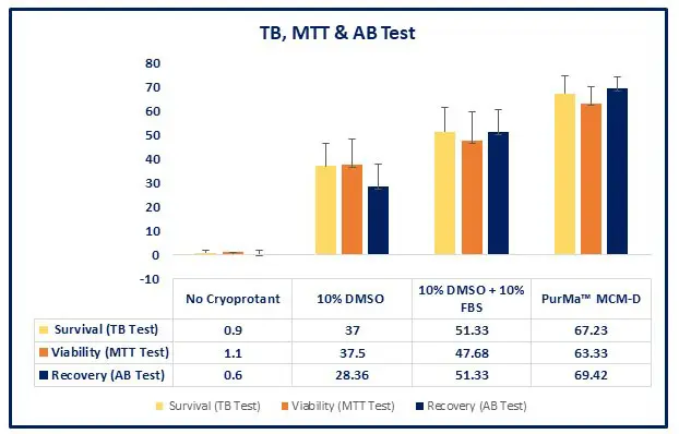 PurMaTM Mammalian Cryoprotective Media (MCM) has an excellent performance for short-term cold storage as well as long-term cryopreservation. Please see the below figure