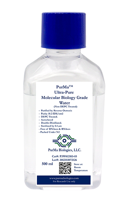 PurMa™ Ultra-Pure Nuclease Free Water (Non-DEPC Treated) is specialized for highly sophisticated molecular biology studies. Moreover, PurMa Biologics manufactures this water by double – Distillation as well as sterilizing by passing through 0.1µm filters.